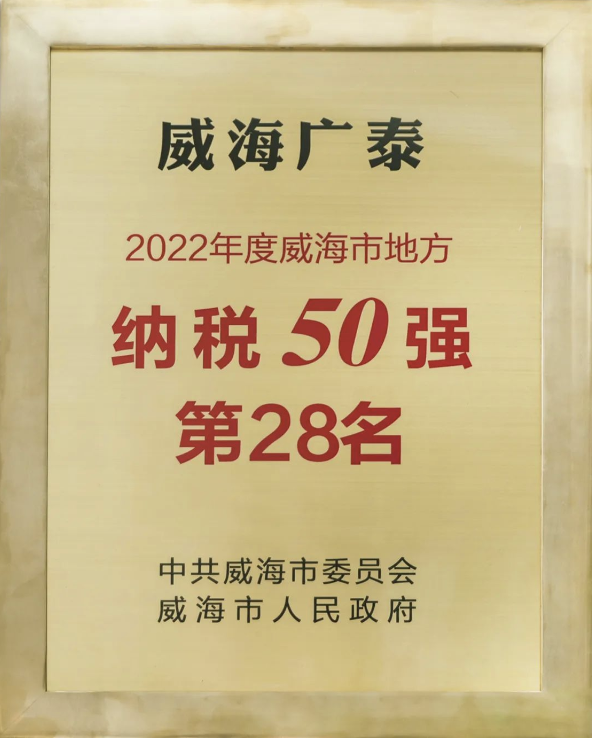 2023年1月28日,威海市2023年工作動員大會在威海國際會議中心舉行,發(fā)布《中共威海市委威海市人民政府關(guān)于表揚2022年度全市高質(zhì)量發(fā)展突出貢獻(xiàn)企業(yè)、單位和個人的決定》,表彰2022年度全市突破百億目標(biāo)企業(yè)、全市地方納稅50強(qiáng)企業(yè)以及招商引資先進(jìn)典型。威海廣泰獲2022年度威海市地…