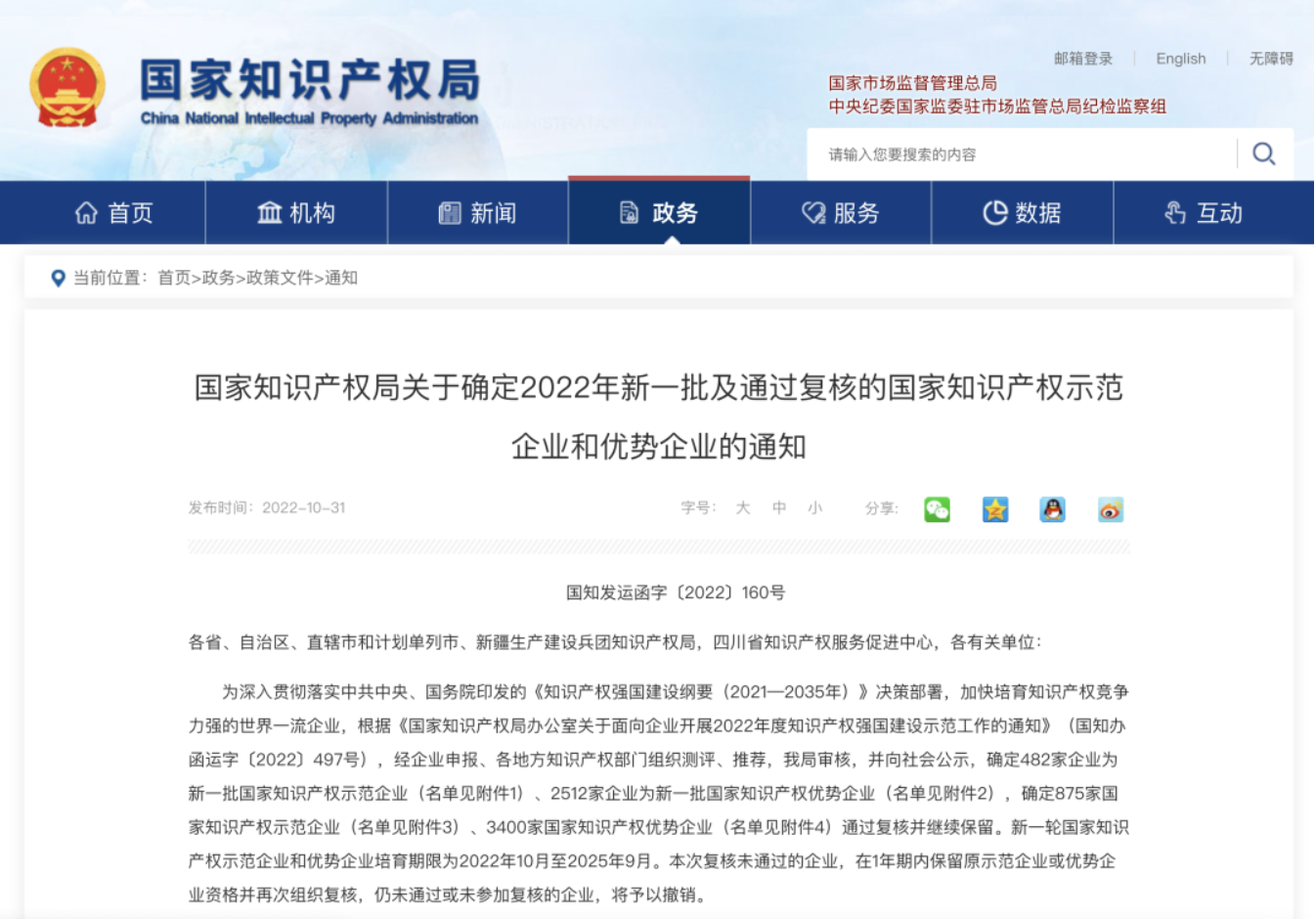 近日,國家知識產權局關于確定2022年新一批及通過復核的國家知識產權示范企業和優勢企業的通知,威海廣泰空港設備股份有限公司(以下簡稱“威海廣泰”)喜獲“國家知識產權優勢企業”稱號。為貫徹落實《知識產區強國建設綱要(2021-2035年)》和《“十四五”國家知識產權保護和運用…