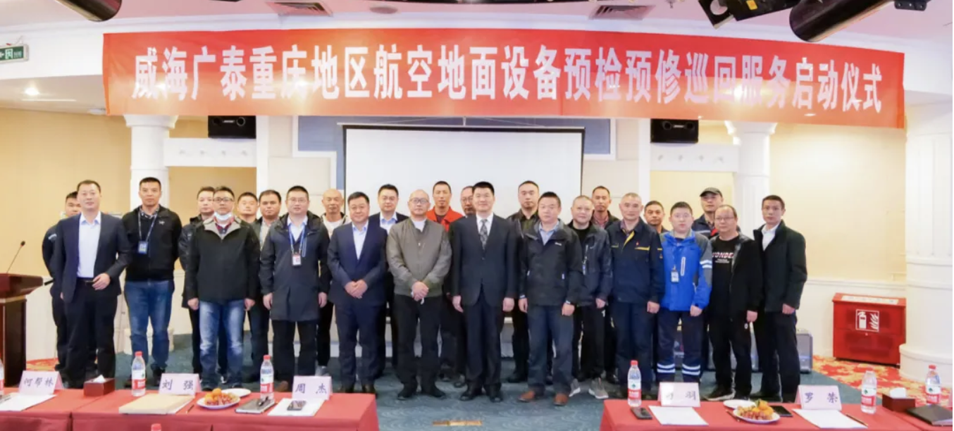 2020年11月4日,威海廣泰正式啟動重慶地區空港地面設備預檢預修巡回服務活動,重慶機場各駐場單位、威海廣泰、山東廣大航服的領導及員工代表30余人參加了此次開幕儀式。這是繼貴州和四川地區之后,廣泰啟動的第三次省級巡檢活動,前兩次巡檢活動行程10000余公里,累計巡檢兩省民用機…
